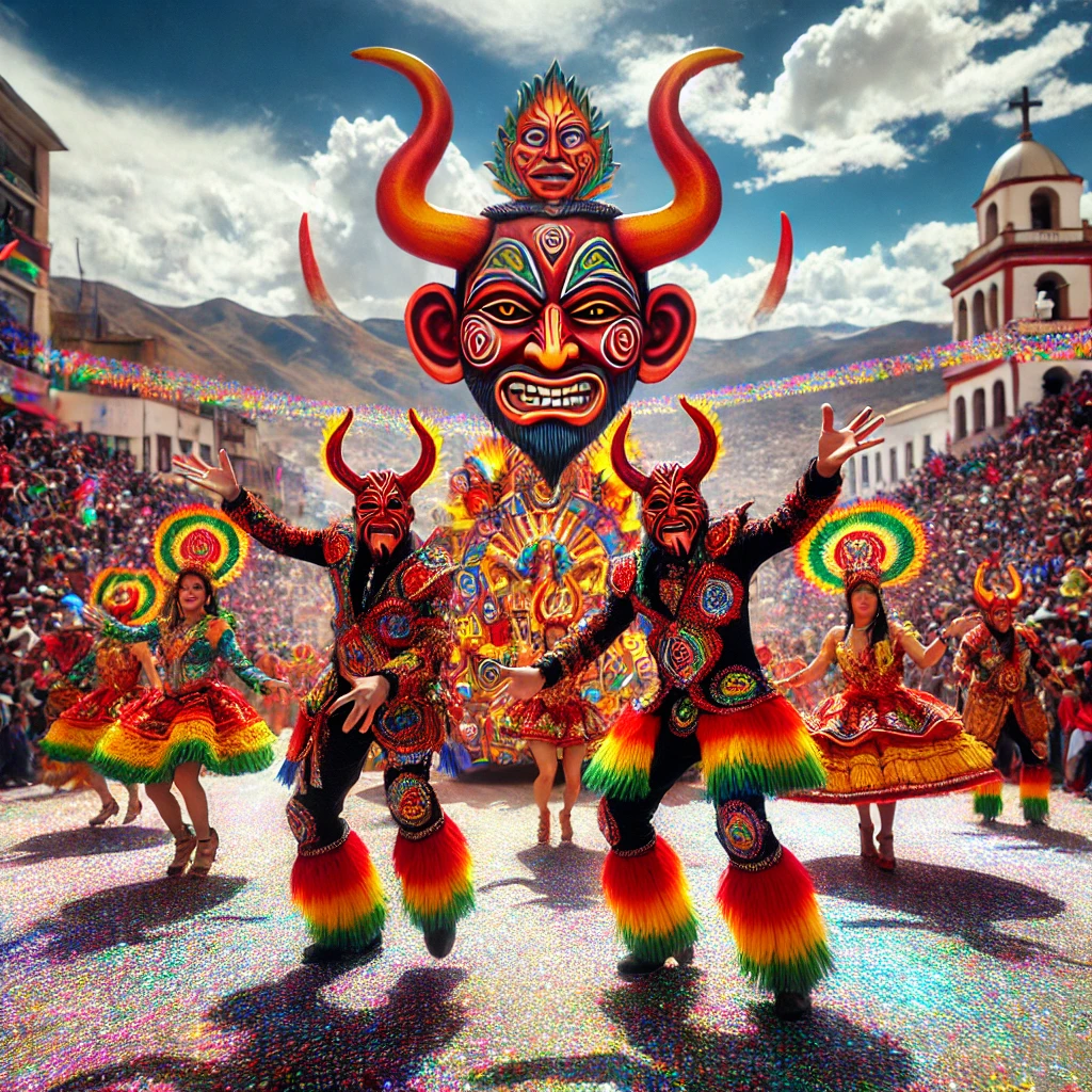 - 라 디아블라다(La Diablada): 이 춤은 오루로 카니발의 상징으로, 무용수들이 화려한 악마 가면을 쓰고 전통 음악에 맞춰 춤을 춥니다. 춤은 천사와 악마의 싸움을 묘사하며, 최종적으로 성모 마리아가 악을 물리치는 내용으로 전개됩니다.