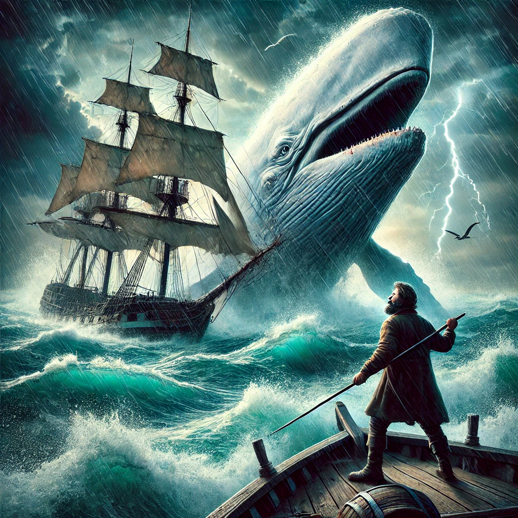 ✅ 모비 딕 (Moby-Dick) – 거대한 흰 고래. 작품 속에서 단순한 동물이 아니라, 자연, 운명, 신비한 존재로 해석되기도 한다.