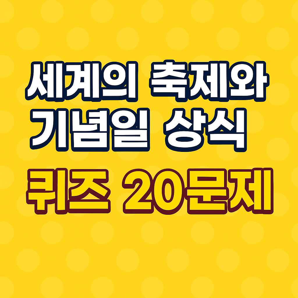 세계의 다양한 축제와 기념일을 퀴즈로 알아보세요! 흥미로운 20문제를 통해 지식도 쌓고 재미도 챙기세요.