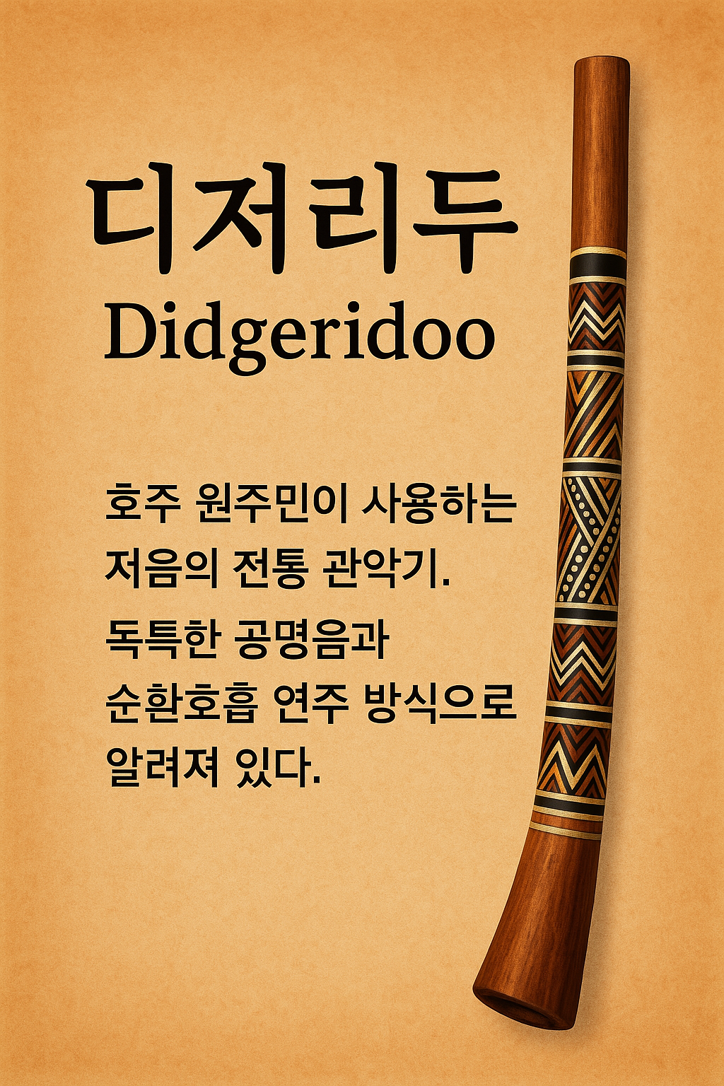 디저리두(Didgeridoo)는 호주 원주민 아보리진(Aboriginal) 문화에서 유래한 저음의 전통 관악기로, 독특한 공명음과 순환호흡 연주 방식으로 전 세계 음악 애호가들의 주목을 받고 있습니다. 이 신비로운 악기의 역사와 특징을 알아보세요.