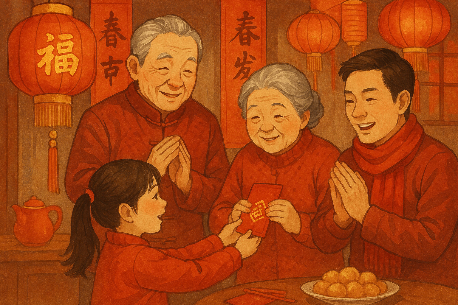 붉은 봉투에 복을 상징하는 돈을 담아 자녀나 젊은 세대에게 주는 풍습으로, 전통적으로는 손으로 주고받았지만 최근에는 위챗페이, 알리페이 등 모바일 송금 방식도 보편화되었습니다. - 춘련(春聯) 붙이기와 폭죽 터뜨리기