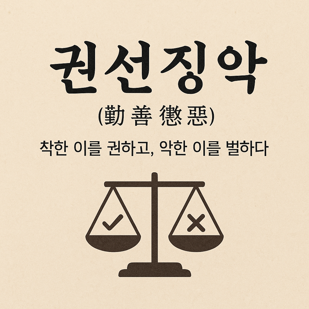 ‘권(勸)’은 권하다, ‘선(善)’은 착한 일, ‘징(懲)’은 징계하다, ‘악(惡)’은 나쁜 행동을 의미합니다.
